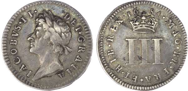 James II (1685-88), Maundy Set, 1686, Fourpence, Threepence, Twopence and Penny, laureate head left, legend surrounds JACOBVS II DEI GRATIA. Rev, crowned mark of value in Roman numerals, reads MAG BR FRA ET HIB REX, outer toothed borders both sides (S.3418; Bull.781; ESC.2381). Toned, good fine to very fine with some residual bloom.