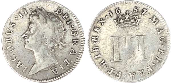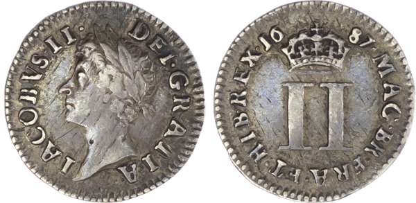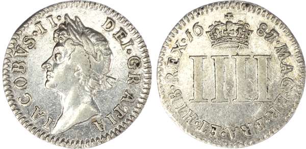 James II (1685-88), Maundy Set, 1687, Fourpence, Threepence, Twopence and Penny, laureate head left, legend surrounds JACOBVS II DEI GRATIA. Rev, crowned mark of value in Roman numerals, reads MAG BR FRA ET HIB REX, outer toothed borders both sides (S.3418; Bull.782; ESC.2382). Good fine, the Penny better.