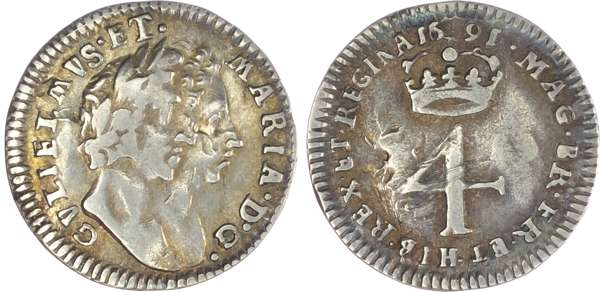 William and Mary (1689-94), Maundy Set, 1691, Fourpence, Threepence, Twopence and Penny, conjoined busts right, legend reads