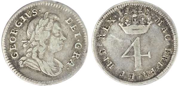 George I (1714-27), Maundy Set, 1727, Fourpence, Threepence, Twopence, Penny, laureate and draped bust right, toothed outer borders both sides, legend reads GEORGIVS DEI GRA. Rev, crowned denomination, reads MAG BRI FR ET HIB REX (S.3658; Bull.1618; ESC.2401). Fine , the Penny clearly a grade higher, rare.