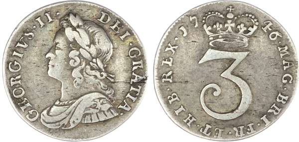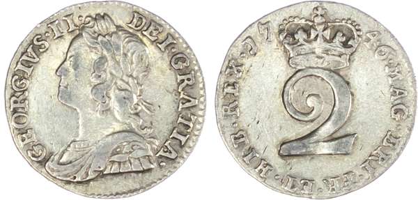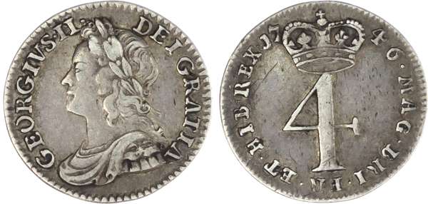 George II (1727-60), Maundy Set, 1746, Fourpence, Threepence, Twopence, Penny, young laureate bust left, toothed border surrounding both sides, GEORGIVS. II. DEI. GRATIA. Rev, crowned mark of value, date either side of crown, legend commences upper right MAG BRI FR ET HIB REX (S.3716; Bull.1773; ESC.2410). Some haymarking, about very fine or thereabouts.