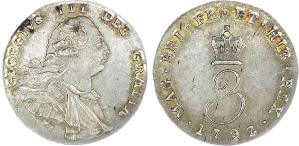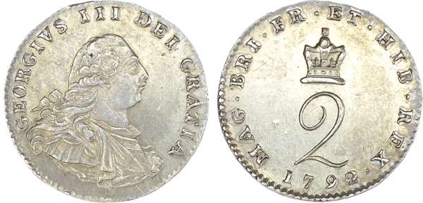George III (1760-1820), Maundy Set, 1792, Wire money, older laureate and draped bust, Fourpence, Threepence, Twopence and