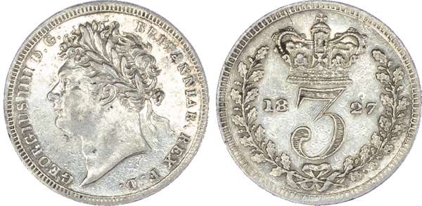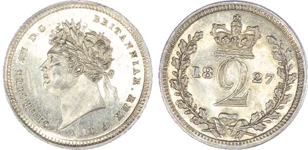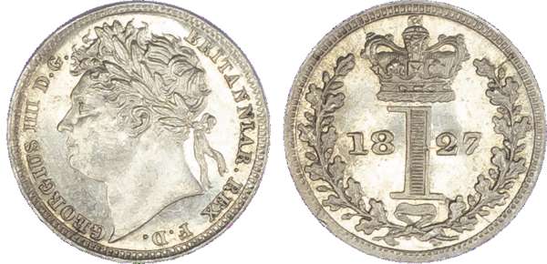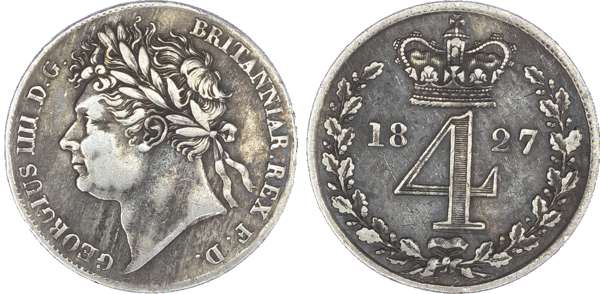 George IV (1820-30), Maundy Set, 1827, Fourpence, Threepence, Twopence, Penny, laureate head left, toothed borders, legend surrounding, GEORGIUS IIII DG BRITANNIAR REX FD. Rev, crowned mark of value, date either side within oak wreath (S.3816; Bull.2452; ESC.2431). Varied state, the 4d very fine, 1d and 2d extremely fine.