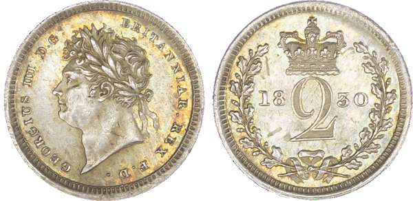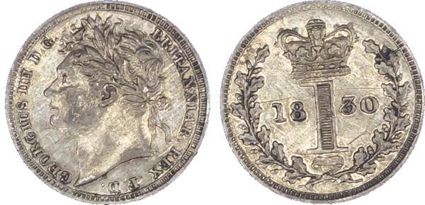 George IV (1820-30), Maundy Set, 1830, Fourpence, Threepence, Twopence, Penny, laureate head left, toothed borders, legend