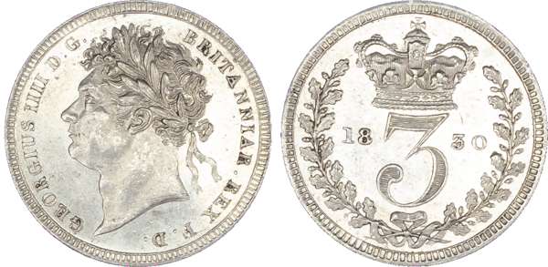 George IV (1820-30), Maundy Set, 1830, Fourpence, Threepence, Twopence, Penny, laureate head left, toothed borders, legend surrounding, GEORGIUS IIII DG BRITANNIAR REX FD. Rev, crowned mark of value, date either side within oak wreath (S.3816; Bull.2456; ESC.2435). Varied condition, some obverse softness in the 4d, good very fine.