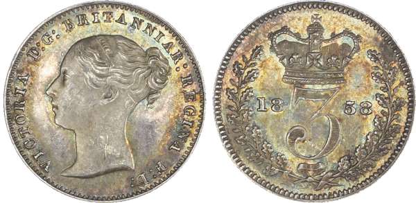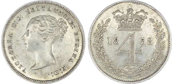 Victoria (1837-1901), Maundy set, 1858, Four, Three, Two and One Pence, young head left, legend and toothed border