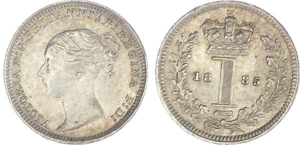 Victoria (1837-1901), Maundy set, 1885, Four, Three, Two and One Pence, young head left, legend and toothed border