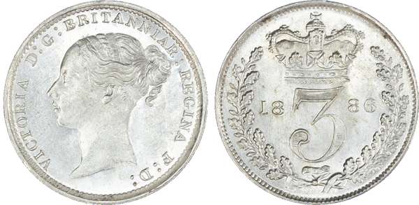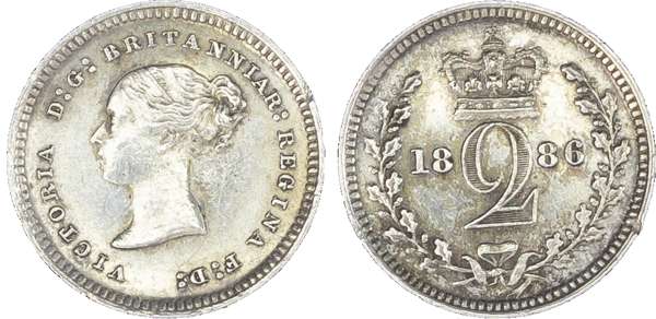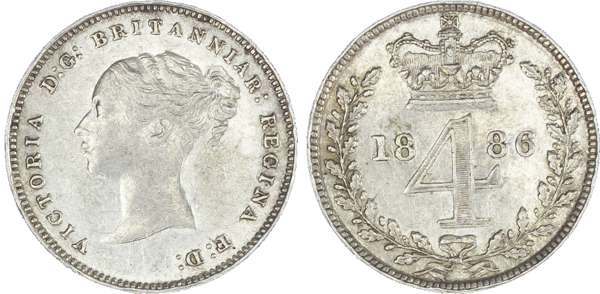 Victoria (1837-1901), Maundy set, 1886, Four, Three, Two and One Pence, young head left, legend and toothed border surrounding, VICTORIA DG BRITANNIAR REGINA FD. Rev, crowned mark of value with date either side contained within oak wreath (S.3916; Bull.3543; ESC.2500). Toned, good extremely fine, most uncirculated.