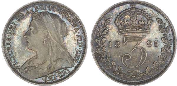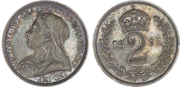 Victoria (1837-1901), Maundy set, 1895, Four, Three, Two and One Penny, each with old head bust left, T.B below truncation for designer Thomas Brock, legend and toothed border surrounding, VICTORIA DEI GRA BRITT REGINA FID DEF IND IMP. Rev, crowned mark of value with date either side all within oak wreath (S.3943; Bull.3553; ESC.2510). Dark uniform cabinet tone, extremely fine.