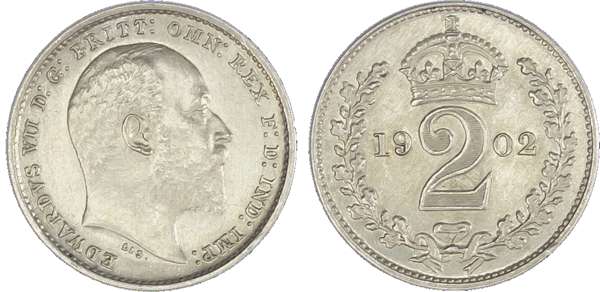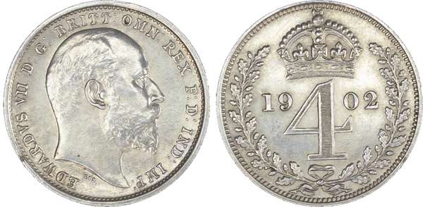 Edward VII (1901-10), Maundy Set, 1902, bare head right, DES raised below truncation for engraver G. W. De Saulles, legend and toothed border surrounding, EDWARDVS VII DG BRITT OMN REX FD IND IMP. Rev, crowned mark of value with date either side all within oak wreath (S.3985; Bull.3607; ESC.2517). Extremely fine, pleasing.