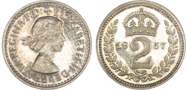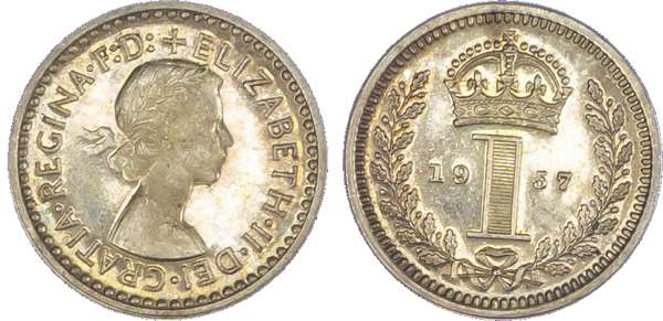 Elizabeth II (1952-2022), Maundy set, 1957, Four, Three, Two and One Pence, each with young laureate head of Queen right,