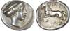 Thessaly, Larissa (c. early-mid 4th Century BC) AR Drachm, 6.16g. Head of the Nymph, Larissa, facing right. Rev. Horse