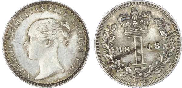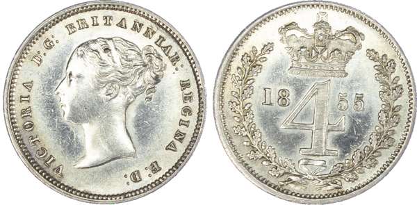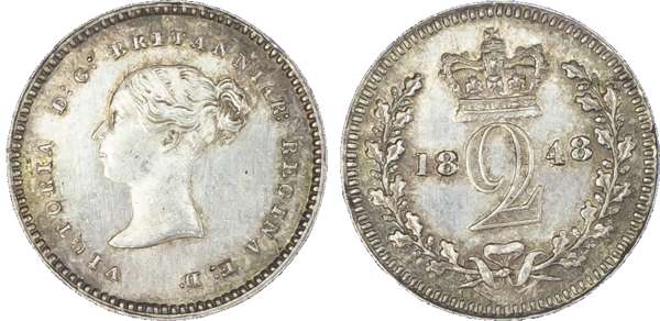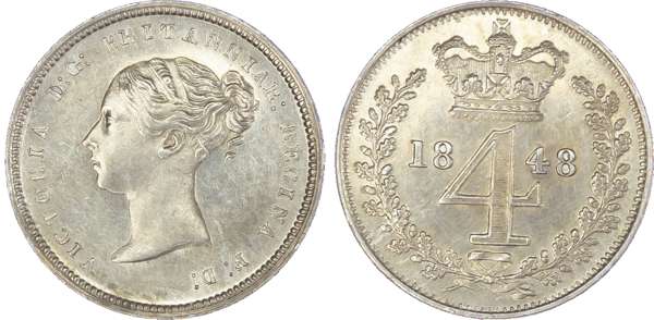 Victoria (1837-1901), Groats, 1844, 1848, 1855; Twopences, 1844, 1848, 1855; Pennies, 1844, 1848, 1855, 1870 (S.3917; 3919;