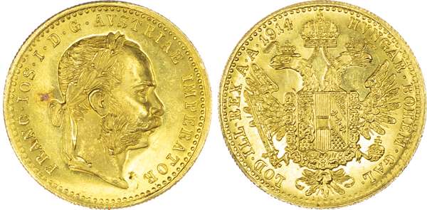 Austria, Franz Josef (1848-1916), gold Ducat, 1914, Vienna, 3.49g (Fr. 493; KM 2267). Uncirculated, lustrous.