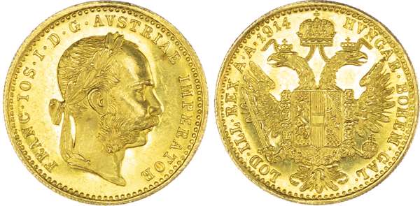 Austria, Franz Josef (1848-1916), gold Ducat, 1914, Vienna, 3.49g (Fr. 493; KM 2267). Uncirculated, lustrous.