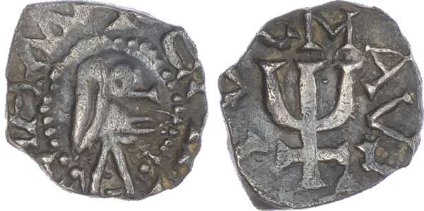 France, Merovingians, Limoges, silver Denier, c. 725-750, 1.04g (Depeyrot 5). Very Fine.