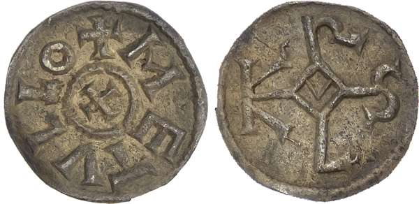 France, Carolingians, Charles the Bald (840-877), silver Denier, Melle mint, 0.77g (Depeyrot 622; MEC 934). Extremely Fine, slightly wavy flan.
