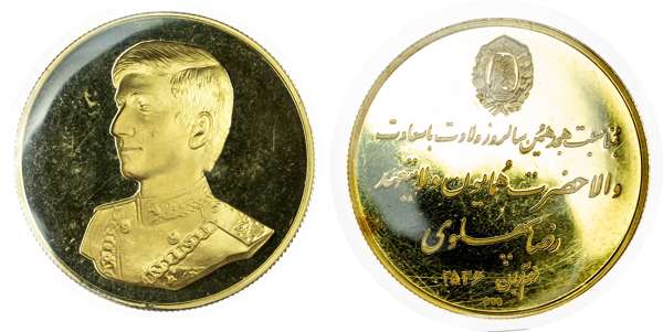 Iran, Mohammad Reza Pahlavi (1941-1979), gold medal commemorating the 18th birthday of Crown Prince Cyrus Reza
