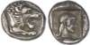 Caria, Knidos (c. 465-446 BC) AR Drachm, 6.05g. Head of a roaring lion facing right. Rev. K-N-I, head of Aphrodite facing right, within an incuse square. (SNG Copenhagen 240; Cahn 83). About Extremely Fine. Some corrosion to edge at 12 o’clock.