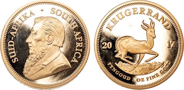 South Africa, gold Proof 5 Oz Krugerrand, 2017, 50th Anniversary of Krugerrand