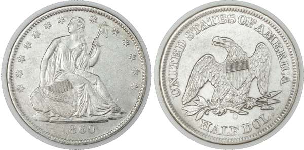 USA, Seated Liberty silver Half Dollar, United States issue, 1860, New Orleans