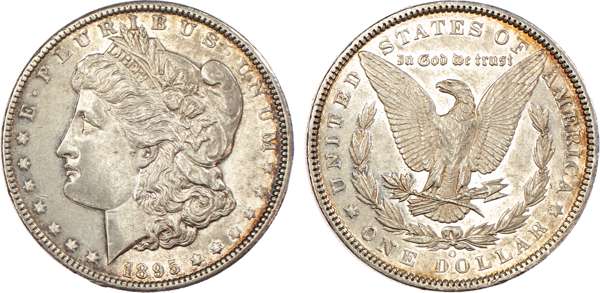 USA, silver Morgan Dollar, 1895, New Orleans, 26.73g (KM 110). Extremely Fine to About Uncirculated, lustrous surfaces, minor bag marks. The item is currently in grading at the time of publication, please check online for the grade.