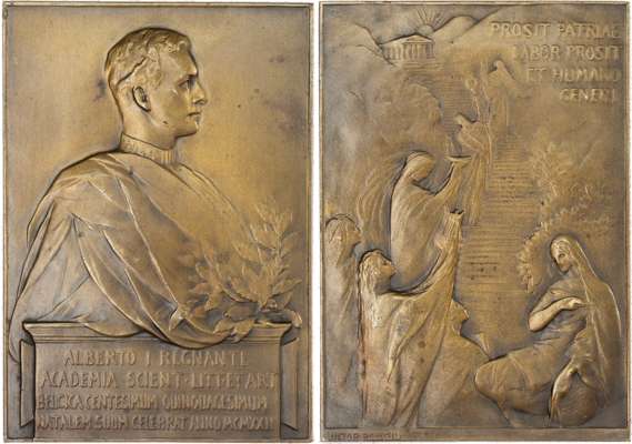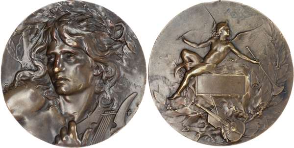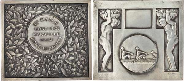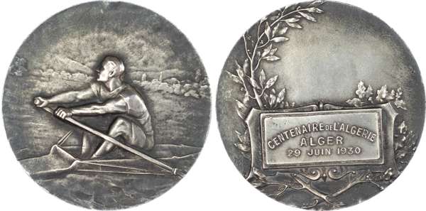 France, Belgium, and Algeria, Lot of Late 19th/Early 20th Century Medals (5). France, “The Lute Player”, 1899, Bronze Medal by L. Coudray. Belgium, 150th Anniversary of the Royal Academy, 1922, Bronze Plaque (72x50mm) by Victor Rousseau. France, Bone Rowing Club (Marseille), 1929, Prize Medal by F. Fraisse / H. Demey. French Algeria, Centenary/Rowing, 1930, Silver Medal. Belgium, 1930, Bronze Medal by Josue Dupon. All Extremely Fine or nearly so.