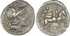 M. Iuventius Thalna (154 BC) AR Denarius, Rome, 3.51g. Helmeted head of Roma facing right, X (mark of value) behind. Rev.