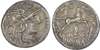 M. Marcius Mn. f. (134 BC) AR Denarius, Rome, 3.74g. Helmeted head of Roma facing right, modius behind, mark of value to