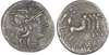 P. Maenius Antiacus M. f. (132 BC) AR Denarius, Rome, 3.79g. TAMPIL, helmeted head of Roma facing right, mark of value