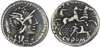Cn. Domitius Ahenobarbus (128 BC) AR Denarius, Rome, 3.84g. Helmeted head of Roma facing right, grain stalk behind, mark of value to right. Rev. ROMA, Victory, holding reins and whip, driving biga right, man spearing lion below, CN•DOM in exergue. (Crawford 261/1; Sydenham 514). Good Very Fine for issue.