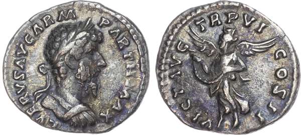 IMP L VERVS AVG ARM PARTH MAX, laureate, draped and cuirassed bust of Lucius Verus right. Rev. VICT AVG TR P VI COS II, Victory standing left, holding open diadem. (RIC 553; BMC 425). Very Fine.