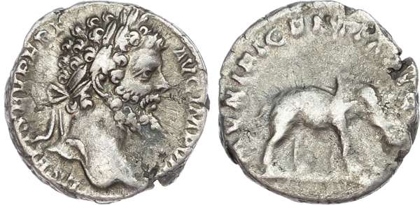 L SEPT SEV PERT AVG IMP VIIII, laureate head of Septimius Severus right. Rev. MVNIFICENTIA AVG, elephant right. (RIC 100; BMC 224). Good Very Fine. Reverse weakly struck.