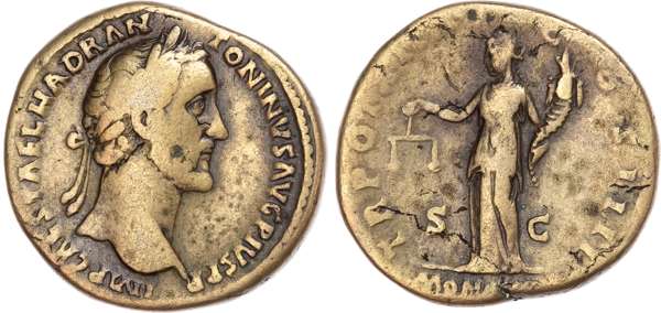 IMP CAES T AEL HADR ANTONINVS AVG PIVS P P, laureate head of Antoninus Pius right. Rev. TR POT XIIII COS IIII, S-C across fields, Moneta standing left, holding scales in right hand and cornucopia in left hand, MON AVG in exergue. (RIC 872; BMC 1867A). Fine.