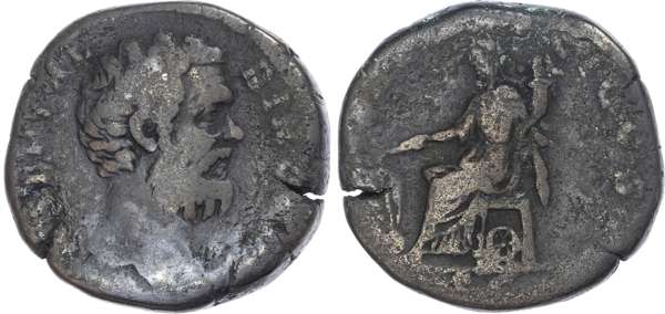 D CL SEPT ALBIN CAES, bare head of Clodius Albinus right. Rev. [FORT REDVCI COS II / SC], Fortuna seated left, holding rudder and cornucopiae, wheel below. (RIC 53a). Fair.