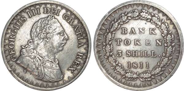 George III (1760-1820), Three Shillings, Bank of England Issue, 1811, 1812 (2) (S. 3769; D. 47).