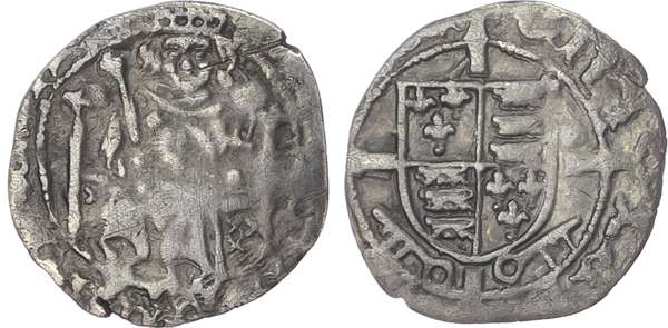 +HENRIC DI GRA REX ANG, Henry VII enthroned, holding orb and sceptre, crosses beneath throne legs. Rev. CIVITAS EBORACI, long cross forchée under square-topped shield, flanked by two keys beneath. (S. 2238; N. 1729). Near Fine. Clipped.