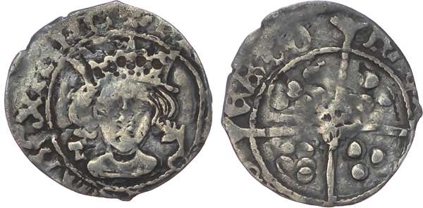 Facing crowned bust, T to left and upright key to right, mm Rose/-, rev long cross pattée with quatrefoil at centre, trefoil of pellets in each angle within beaded inner circle, 0.64g (N 1686; S.2166). About very fine for issue, better than usual. Extremely rare.