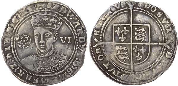 Edward VI (1547-1553), Sixpence, third period, fine silver issue, mintmark tun both sides.