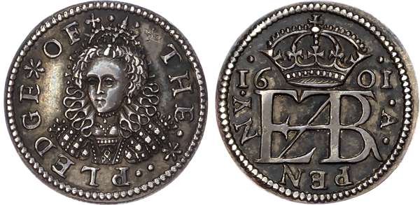 Elizabeth I (1558-1603), Pattern Pledge Penny in Silver, 1601, by C. Anthony.