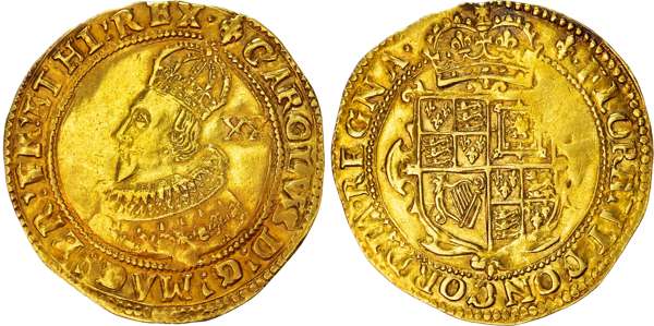 Charles I (1625‑1649), Unite, Group A, Class II, Tower (under King), · mm lis.