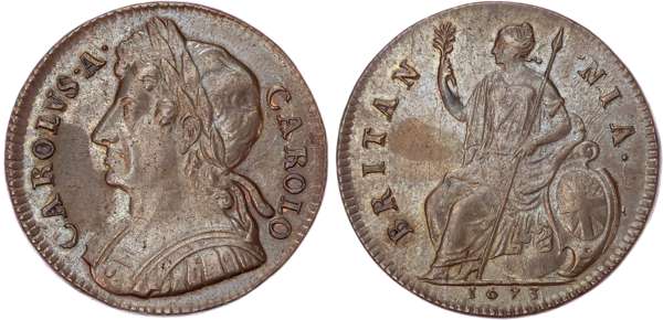Charles II (1660-1685), Copper Halfpenny, 1673.