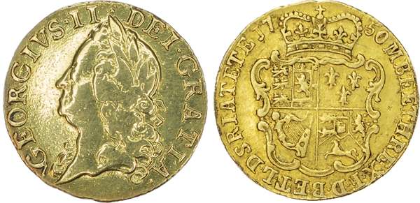 Older laureate head left, rev. crowned garnished shield, (S.3685). Near very fine, obverse gilded. Ex jewellery.