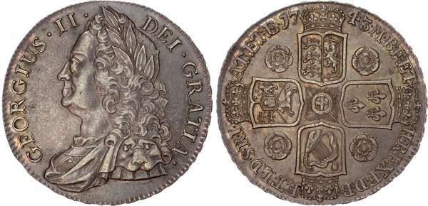 George II (1727-1760), Crown, 1743, DECIMO SEPTIMO.