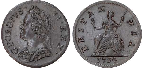 Older laureate and cuirassed bust left, Rev, Britannia seated on globe with spear, shield and spray of leaves, date in exergue, (S.3722; BMC 892). Good extremely fine a couple of minor marks.