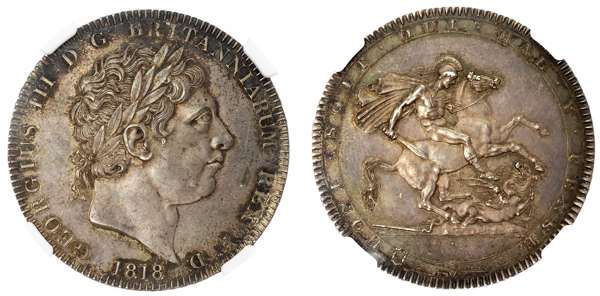 George III (1760-1820), Crown, 1818 LVIII. NGC MS63
