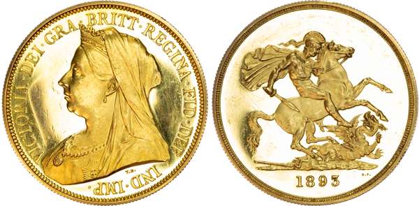 Victoria (1837-1901), Proof Five Pounds, 1893.