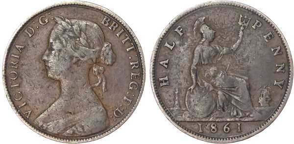 Victoria (1837-1901), Halfpenny, 1861, ‘Unrecorded Die Pairing 6+F’. Excessively rare