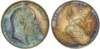 Bare head right, rev. lion atop crown, edge milled, (Bull 3589; ESC 1412; S.3982). Almost uncirculated, delightful blue, gold tone.