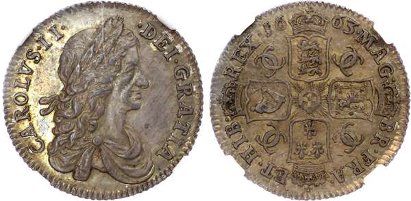 Charles II (1660-1685), Milled Coinage (1662-1685), AR Shilling, 1663. NGC MS 63.